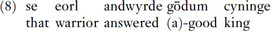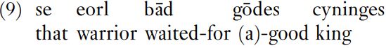 In (9), cyninges has the genitive suffix -es and the adjective go¯des has the same suffix.
