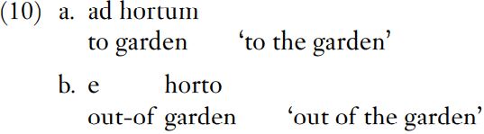 ‘Ablative’ derives from a Latin word meaning ‘taking away’ and occurs with prepositions expressing movement from or off something, as in (10b).
