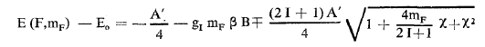 لندعو (F, mF) E الطاقة ضمن الحقل B لذرة ذات عزم حركي كلي F ، ومميزة بالعدد