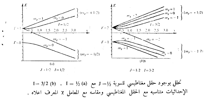 (وذلك بتسمية 'Sw= (2I + 1)/(2)A فرق الطاقة بين المستويات F = I ±1/2 في حقل معدوم).