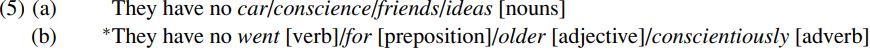 So, using the relevant syntactic criterion, we can define the class of nouns as the set of words which can terminate a sentence in the position marked — in (4).