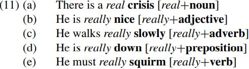 Another way of differentiating between an adjective like real and an adverb like really is that adjectives are used to modify nouns, whereas adverbs are used to modify other types of expression: