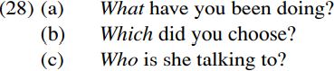 We might therefore refer to pronouns like those bold-printed in (27) as Q-pronouns (or pronominal quantifiers). If question words like which?/what? in expressions like which books?/what idea? are interrogative quantifiers, it follows that interrogative pronouns like those italicized in the examples below: