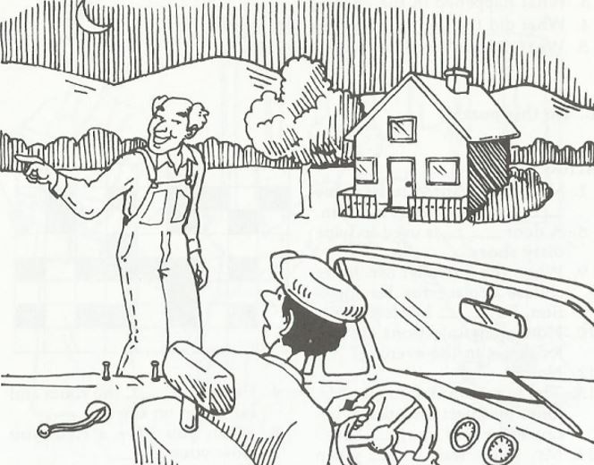 "No," the old man answered, "this is my house. And now I'll show you the way to the Sun Hotel. Turn around and go back nine miles. Then you'll see the Sun Hotel on the left."