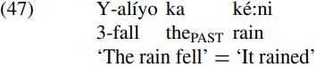 In (47), the head D ka ‘the’ of the subject DP ka ke:ni ´ ‘the rain’ is a past-tense determiner (the corresponding non-past determiner being na), providing clear evidence of tense-marking on the subject. If tense-marking of subjects also takes place in English, we can assume that a tensed T will have a tensed subject, so that who in Who called the police? will be a past-tense subject by virtue of being the subject of a past-tense T. Now, at first sight this might seem implausible, since who doesn’t carry the regular past-tense suffix -d: however, this is because -d is a verbal suffix which attaches only to (regular) verbs, hence not to a pronoun like who. Pesetsky and Torrego claim that the tense feature carried by the subject of a tensed clause in English is manifested as nominative case, so that a nominative subject is really a subject carrying a tense feature. On this view, who in (42c) Who called the police? will carry a tense feature which causes the subject pronoun to be spelled out as the tensed (nominative) form who, rather than as the accusative form whom or the genitive form whose.