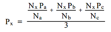 ب- يمكن استخدام متوسط حسابي بسيط لتقدير سجل المحطة المفقود. إذا كان التساقط السنوي في أي من المحطات الثلاث يختلف عن المحطة الفاقدة للسجلات بأكثر من عشرة بالمائة تستخدم طريقة النسبة الطبيعية. وتعتمد هذه الطريقة على تراكم قيم التساقط على حسب نسب قيم التساقط السنوي كما