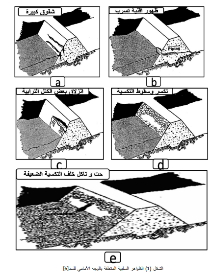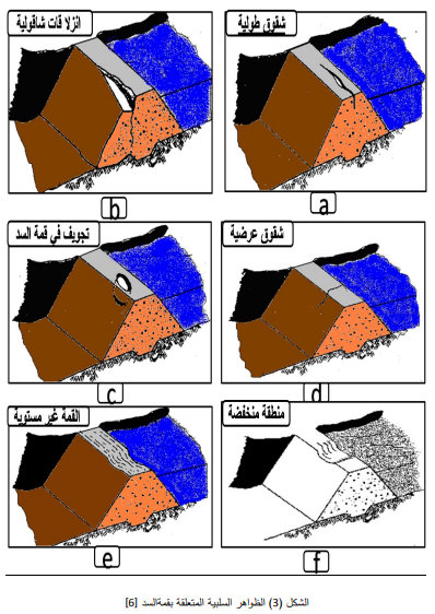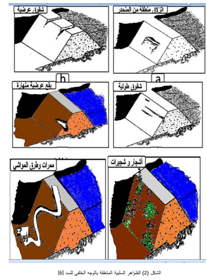 ويوضح الشكل (3) الظواهر السلبية المتعلقة بقمة السد.