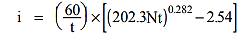 ويمكن تقدير شدة الأمطار من المعادلة :