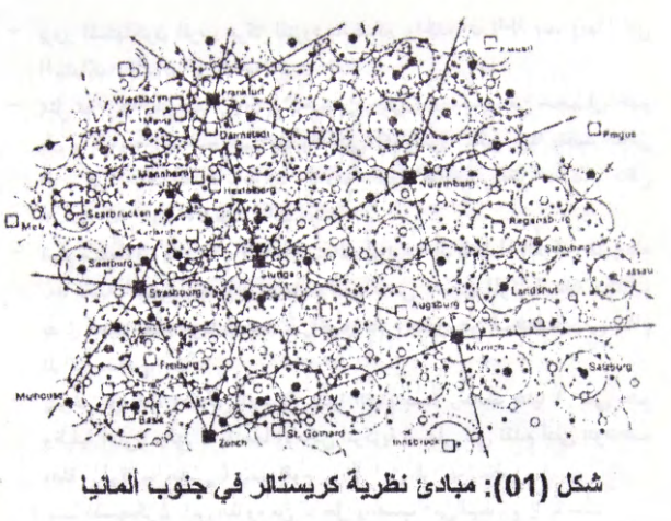 8- يملك المستهلكون نفس القدرة من الدخل والطلب على البضائع والخدمات وكان يهدف كريستالر من وراء كل ذلك إلى إيجاد نموذج نظري لتوزيع الأماكن المركزية ثم مقارنة هذا التوزيع النظري مع الواقع وحصر أوجه الشبه والاختلاف بينهما فيما يتعلق بالنظام الحضري (شكل رقم: 01).