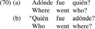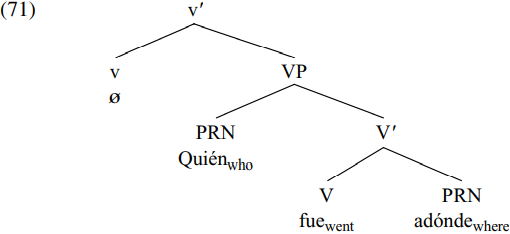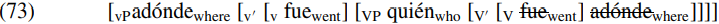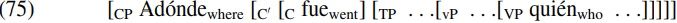 And (75) is the structure of (70a) Adonde fue qui´en? ´ ‘Where did who go?’