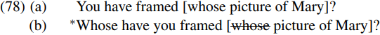 The hypothesis that definite DPs are phases also offers us an interesting account of why (in languages like English) possessives cannot be extracted out of their containing DPs – as we see from the contrast between the echo question in (78a) below and its wh-movement counterpart in (78b):