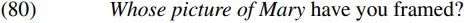 The interrogative possessor in (82b) appears to move to spec-DP, and this movement is consistent with the view that DP is a phase, since if the possessor remained in situ within the NP complement of D, PIC would prevent C from attracting the wh-pronoun (since NP and its constituents would be impenetrable to C). Movement of the interrogative pronoun to the edge of DP makes it accessible to C.