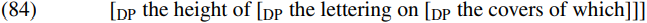 One way round this problem (consistent with maintaining that definite DPs are indeed phases) would be to posit that (like other phase heads such as C and transitive v), the head D constituent of DP can have an [EPP] feature which allows it to attract a DP to move to its specifier position. This would mean that which in (83b) moves first to become the specifier of the DP the covers of which, then to become the specifier of the DP the lettering on the covers of which, then to become the specifier of the DP the height of the lettering on the covers of which, from there moving into spec-vP and thence into the spec-CP position which it occupies in (83b). An interesting question raised by the assumption that D can have an [EPP] feature triggering movement to its specifier position is why the NP king of Ruritania in (76e) cannot move to become the specifier of the DP the king of Ruritania, and from there go on to move to the front of the overall clause. The answer is that the Remerger Constraint prevents the NP king of Ruritania from moving to spec-DP, since this constraint tells us that a constituent which is merged as the complement of a given head cannot subsequently be remerged as its specifier. If DP is a phase, movement of the NP directly out of its containing DP will be blocked by the Phase Impenetrability Condition – as we saw earlier. (For an insightful discussion of extraction out of DPs, see Davies and Dubinsky 2003.)