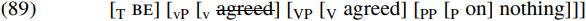 If PP is a phase, the domain of the PP phase (i.e. the nothing complement of the preposition on) will be impenetrable to the external T probe BE, so preventing BE from agreeing with, assigning nominative case to and triggering passivisation of nothing. An analysis along the lines of (89) would therefore wrongly predict that sentences like (88) are ungrammatical. Does the fact that sentences like (88) are grammatical therefore provide us with evidence that PPs are not phases?