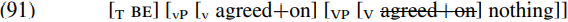 If prepositional passives do indeed involve a structure in which the preposition is adjoined to the verb, (88a) will have a structure along the lines shown in simplified form in (91) below at the point at which the T probe BE is introduced into the derivation: