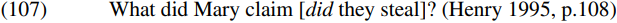 There are also empirical problems posed by our attempt to implement Chomsky’s analysis. To see why, let’s return to consider the structure of Belfast English questions like (38) above, repeated as (107) below: