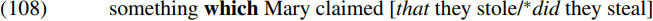 where the italicized C constituent heading the bracketed complement clause can be spelled out as that but not as an inverted auxiliary like did. This suggests that the italicized intermediate C is marked as interrogative in a structure like (107), and as relative in a structure like (108). What this might suggest is that C must carry a clause-type feature of some kind, valued as relative if the clause contains a relative pronoun, and interrogative if it contains an interrogative pronoun. If what marks a pronoun as interrogative or relative is an interrogative operator feature [Q-Op] or a relative operator feature [R-Op], then it would seem as if intermediate C constituents do indeed carry an unvalued operator feature [u-Op] which is valued as relative/interrogative via agreement with the wh-pronoun. If this is so, then the topmost C constituent in a wh-structure must carry some additional feature which makes it complete – perhaps a focus/topic feature (bearing in mind that it is sometimes claimed that interrogative pronouns behave like focused constituents, and relative pronouns behave like topics), or alternatively a scope feature. Details need to be worked out, but I will not attempt to do this here.