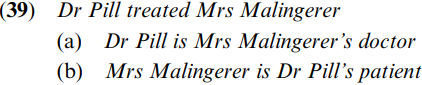 Type (e) of possession involves ‘something typically associated with the possessor’. This covers my general (said by a soldier), my men (said by a general), my doctor (said by a patient) and my patients (said by a doctor). That is, we have:
