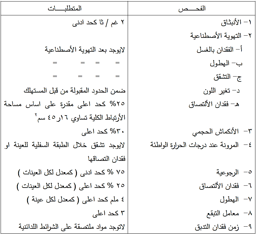 تطابق خواص مواد الاحكام ذات الاساس المطاطي للمتطلبات الواردة في المواصفة القياسية العراقية ( رقم 1647) وكما مبين في الجدول رقم (8-6) .