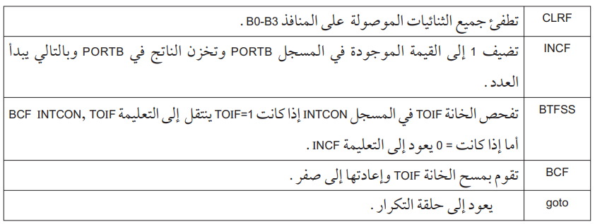 ويكون هذا البرنامج لهذا العداد الثنائي كما يلي: