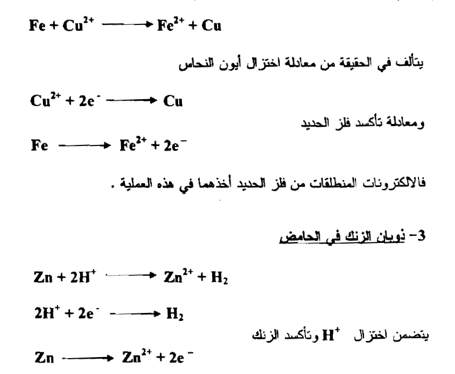 3- إن عملية ذوبان فلز الزنك في حامض الهيدروكلوريك هي أيضاً عملية تأكسد واختزال