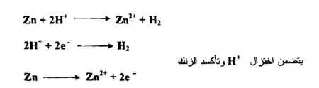 وهناك كذلك أخذ أيونا الهيدروجين الإلكترونين اللذين فقدها الزنك.