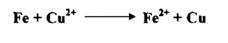 هذه الحالة يعطي فلز الحديد الكترونات إلي أيون النحاس الثنائي . فيصبح الحديد متأكسداً إلي Fe ويختزل أيون النحاس الثنائي إلي فلز النحاس .
