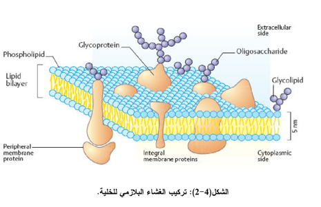 يشكل الغشاء الخلوي المحيط الخارجي لكافة الخلايا الحيوانية وهو عبارة عن جــدار غشائي رقيــق (90-60 أنكستروم) يتكون من مواد دهنية مفسفرة Phospholipids تتداخل مع بروتين داخل وخارجي وهذا ما يعرف بالنموذج الفسيفسائي السائل Fluid Mosaic Model الذي افترضه العالمــــان ســــانكر ونيكلسون عام 1972 والذي يعد الأكثر قبولاً بين النماذج العديدة التي وضعت سابقاً (الشكل 4-2).