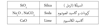 والتي تستخدم لتصنيع خامات الزجاج الاساسية :