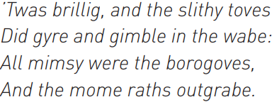 No native English speaker – probably not even Carroll himself – can say what brillig, gyre, wabe or borogoves mean (though some online have had a stab at doing so), but the poem works because all these words, and the many other unfamiliar inventions elsewhere in Jabberwocky, could exist in English: they just happen not to. They represent what linguists call accidental gaps in the lexicon. Carroll’s creations all respect the phonotactics of English, i.e. the constraints on the way its speech sounds can be combined.