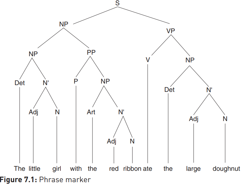 We can now present the structure of this sentence in full, using the phrase-structure marker or tree diagram below.