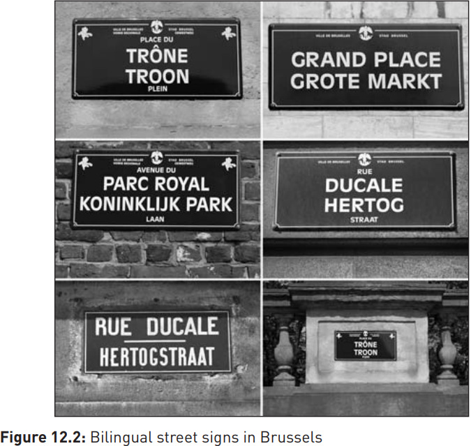 Unusually, Belgium applies both principles. In officially bilingual Brussels, street names and all public institutions are given in both official languages, French and Dutch, and all public services must by law be provided in both languages. Outside the capital, however, the Territory Principle applies, according to which French-speaking Belgians are required to use Dutch in the neerlandophone zone and vice-versa, with no official accommodation to the other language in either case.