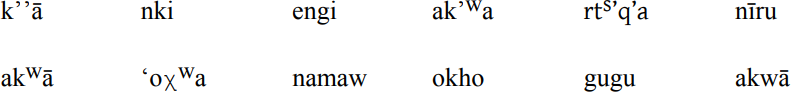 D. *akwā is only the proto-form for Algonquian, but Greenberg and Ruhlen present it as a proto-form for most of the languages of North America. Beyond Algonquian, in assorted Native American languages, we find forms for water (and related meanings) as disparate as uk, yokha, ‘aha’, ku’u, iagup, uku-mi, and oxi’.