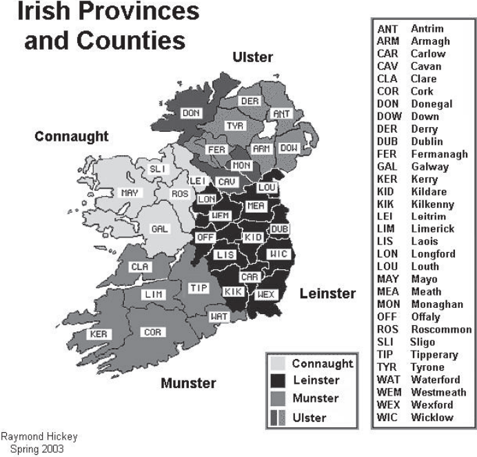Comments The south of Ireland can be divided into two broad dialect regions. The first and oldest is the east coast dialect area which stretches from Waterford up to beyond Dublin, probably as far as Dundalk in its original extension before 1600.