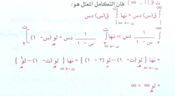 والتكامل المعتل يرتبط بالاقتران ق(س) المتصل والذي قيمته ليست سالبة على الفترة اللانهائية [ أ , ∞ ] عندما نها ق(س)س___∞ = صفر حيث لكل