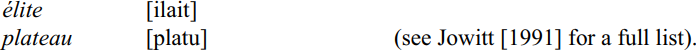 The consonant cluster /kw/ is reduced to [k] as in [εkɪpmεn(t)] for equipment. Quantitative support for this comes from an experimental study involving ‘reading passage’ style (Gut 2003). I found that syllable structures that never occur in NigE speech compared to British English speech are syllables with deleted vowels (C, CC, CCC), syllables with three consonants in the onset position (CCCV, CCCVC, CCCVVC), the syllable type VVC and syllables with three consonants in the coda position (CVCCC). Furthermore, Nigerians produce significantly more open syllables (syllables without a final consonant) than British English speakers reading the same passage, which reflects the high proportion of consonant deletions.