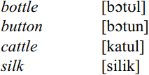 The other consonant cluster simplification strategy is the insertion of the epenthetic vowel [u] or [i] between word-final syllabic consonants and the preceding consonant as e.g. in