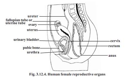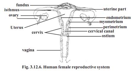 Vagina - It is the female copulatory organ. It is a fibromuscular tube. It is about 10 cm long. It extends from the uterus to the outside. The vaginal passage is used during intercourse and it allows menstrual flow and child birth.