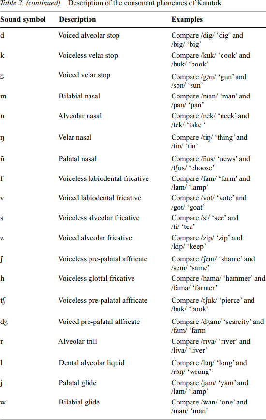 Kamtok consonants