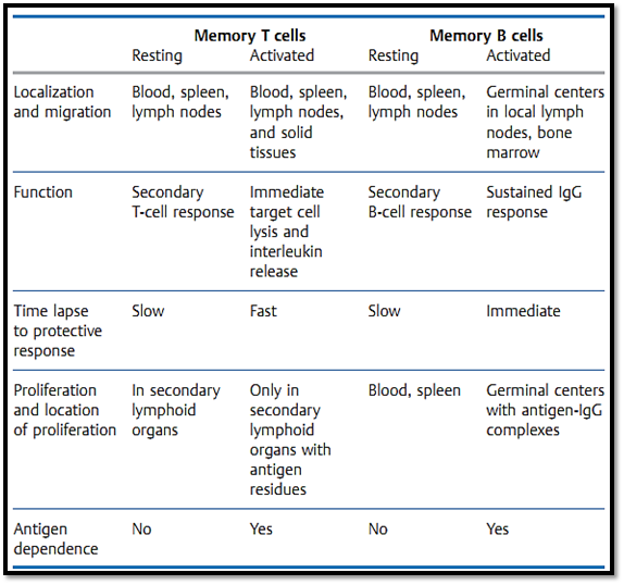 Table 1 Characteristics of T- and B-Cell Memory