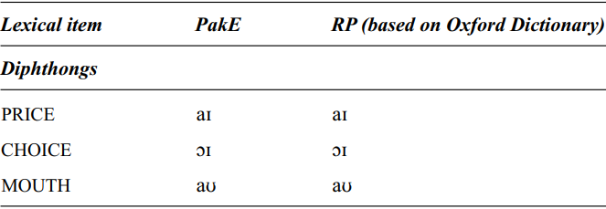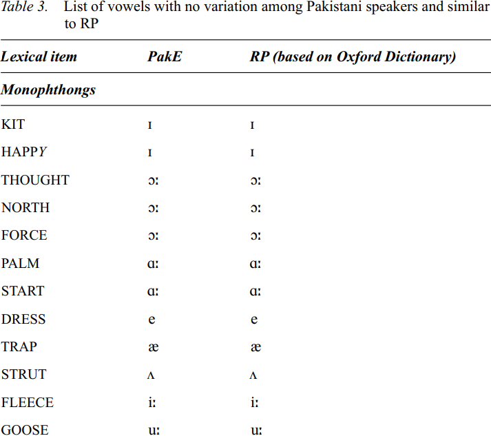 Table 3. (continued) List of vowels with no variation among Pakistani speakers and similar to RP