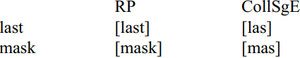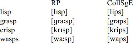 Metathesis in CollSgE seems to be highly specific, being limited to the cluster sp, which is realized as [ps]. Exactly why the sp cluster should be prone to metathesis remains unclear.