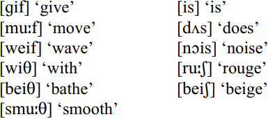 There is a tendency for the devoicing of /v, z, ð, ʤ/ in final position. Some examples follow: