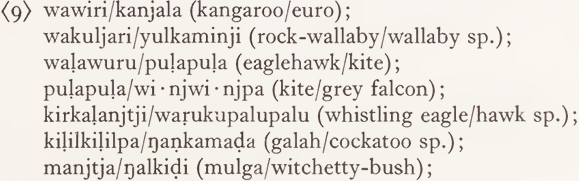 The examples which I have used in this brief account illustrate the potential relevance of the tjiliwiri activity to the study of purely linguistic matters. There is, however, another aspect of the tradition which I have not touched on but which promises to be of considerable anthropological interest. The majority of Walbiri- tjiliwiri equivalences conform to a general principle of antonymy which is relatively consistent throughout and which can be characterized in terms of highly familiar, universal semantic notions - this is the principle which Walbiri speakers refer to by the term