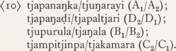 The parenthetic glosses here are the traditional ones employed in the anthropological literature (e.g., Meggitt, 1962, pp. 164-87). These subsections are arranged in more inclusive groupings: there are two patrimoieties (AD, BC), two matrimoieties (AC, BD), two merged alternate generation moieties (AB, CD), and four sections (A1 D2, D1 A2, B1 C1, B2 C2). There exists a system of terminology corresponding to each of these groupings. It can be seen that the tjiliwiri opposite of a given subsection X is that subsection Y whose members belong simultaneously to the same patri-, matri-, and merged alternate generation level moieties as the members of X. Equivalently, the tjiliwiri opposite of X is that subsection Y whose members (collectively) are distinct from those of X solely on the basis of section membership (i.e., in biologically based terms, on the basis of agnation). Furthermore, it is obvious that section membership (or agnation) is the only dimension which can minimally oppose subsection terms, a fact that requires some contemplation to appreciate. By any pairing other than the actual tjiliwiri one, the paired terms differ in at least two dimensions. This and the earlier examples indicate that minimal opposition is basic to the tjiliwiri principle of antonymy.
