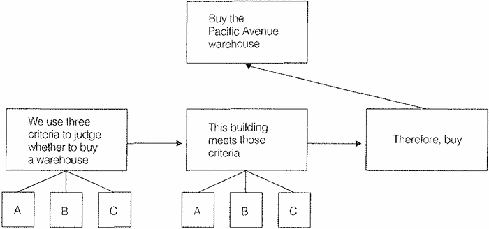 Suppose you want to tell someone to buy a warehouse, and you support the recommendation with the following deductive argument.
