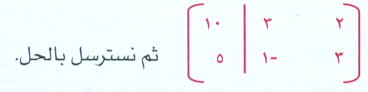 2س + 3ص = 10 نضع المعاملات والثوابت في مصفوفة موسعة وهكذا.