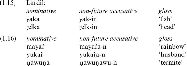 A second case is from Lardil, where short noun stems are augmented and long ones truncated in the nominative. Augmentation (see (1.15)) involves a further violation of FILL: the optimal parse supplies an empty nuclear slot, and phonetic material is supplied. Truncation is slightly more difficult; relevant data appear in (1.16). Here, PARSE is violated ± the final vowel is left unparsed and therefore unrealizable, and because of restrictions on the coda in Lardil, preceding consonants are typically also lost, as in the `termite' example. PARSE is violated here due to the higher-ranking (and language-specific) constraint, FREE-V, shown in (1.17).