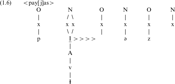 (2) at the interconstituent level, where e.g. an onset will govern a preceding rhymal complement; again we have strict locality and directionality, but here the direction is right to left: