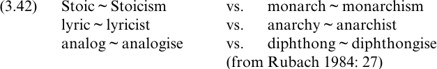 We have now exhausted Halle and Mohanan's list of rules, with the exception of Velar Softening of /k g/ to [s ʤ], which must apparently be ordered on Level 2 since it applies in underived reduce, oblige; some further examples are given in (3.41).